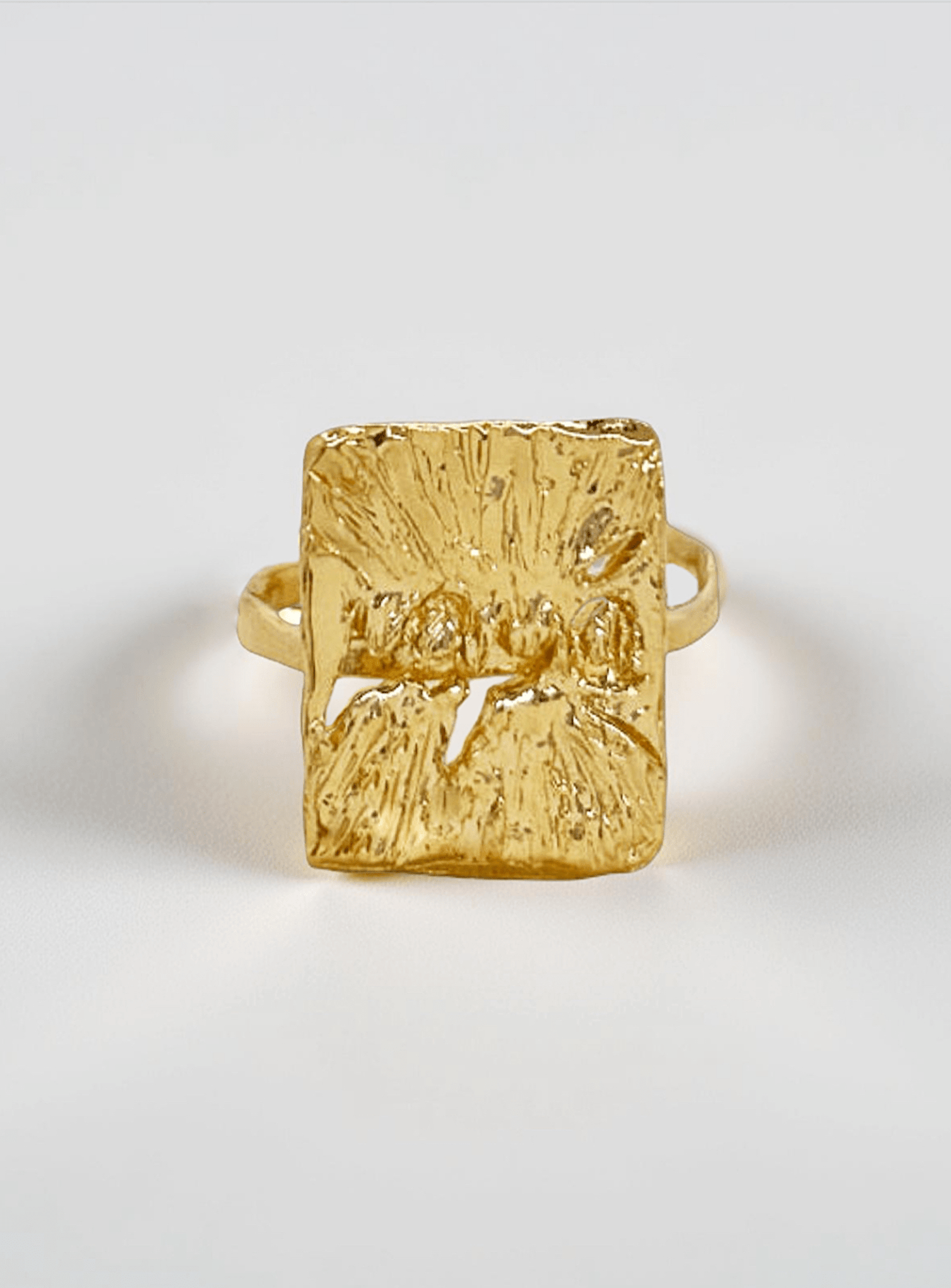 Kimio est une bague aux lignes brutes et texturées, réglable sculptée dans la cire et réalisée à Paris. Gravée du mot grec YAYA, qui signifie MAMAN, cette pièce est le symbole d'un amour entre une mère et son enfant, le résultat d'une enfance heureuse, mariage de deux cultures. À la taille ajustable, elle saura s'adapter à tous vos doigts, pour la porter seule ou parmi une accumulation d'autres modèles.