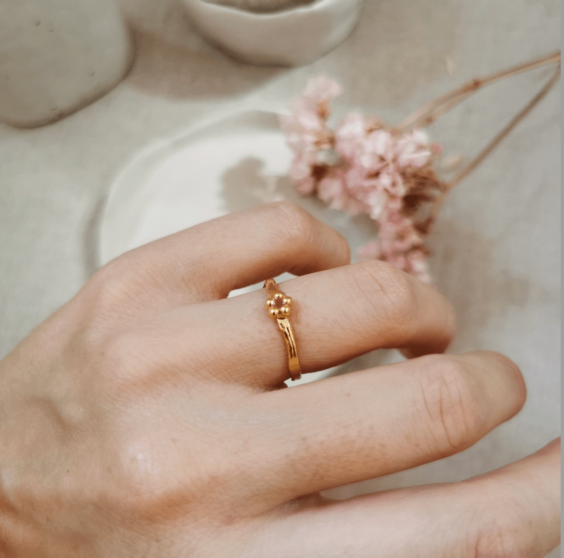 Lali, petite fleur éclatante, se pose délicatement au doigt, un éclat de rêve doré à l’or 24 carats recyclé. Réglable, elle grandit avec l'enfant, douce promesse d’émerveillement. En rose ou en bleu, pour les petites mains ou les grandes, elle s’épanouit en duo, une touche de poésie qui lie mère et enfant dans un jardin de couleurs éternelles.