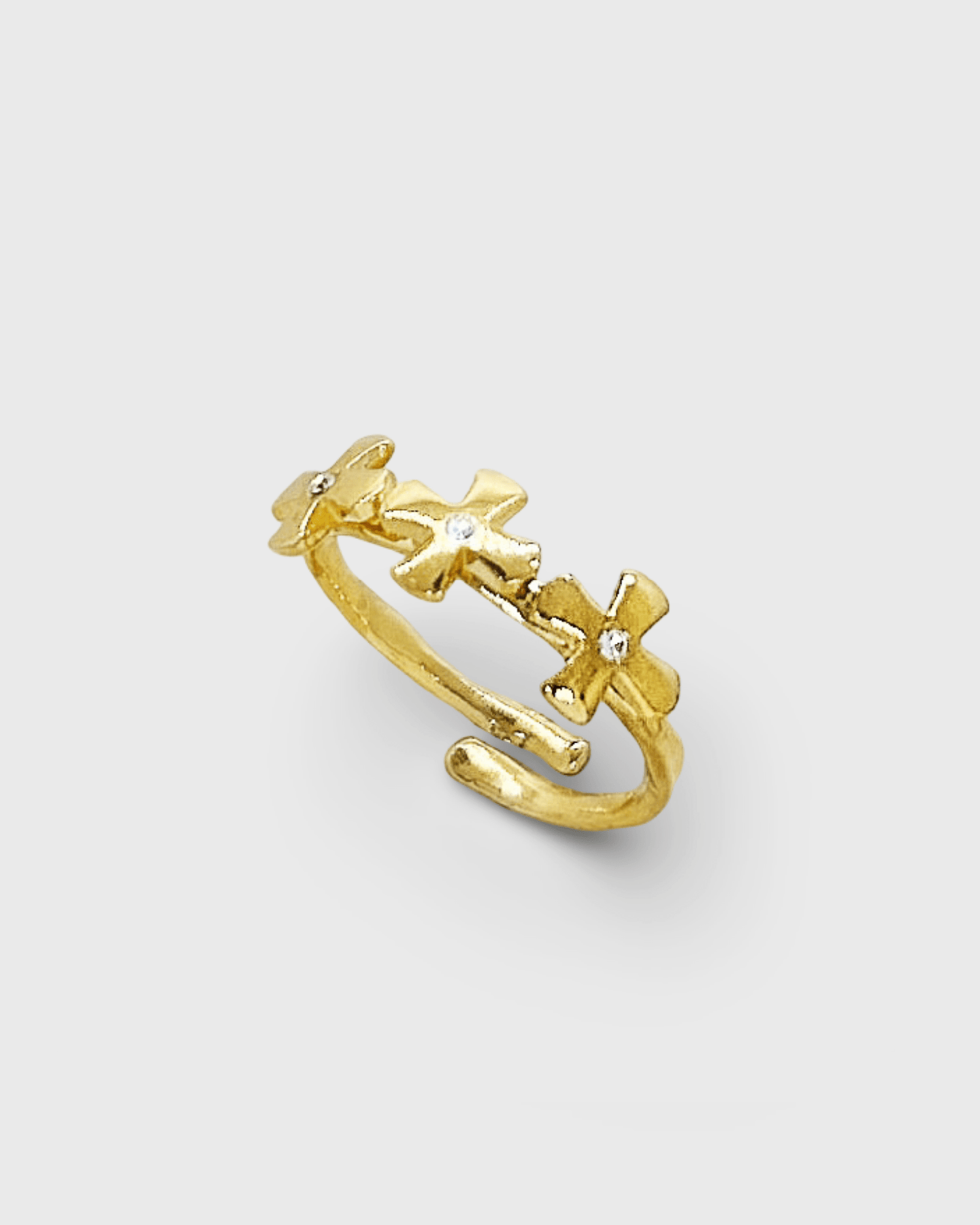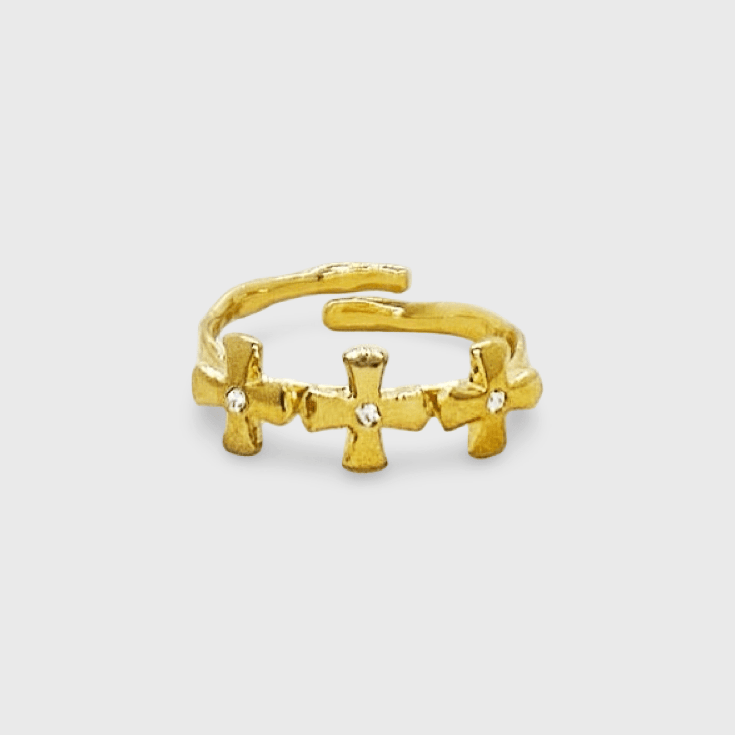La bague ajustable Monem est ornée de trois croix serties, alliant inspiration grecque antique et design moderne. Elle s'adapte parfaitement au doigt tout en évoquant les symboles sacrés de l'Antiquité. Ses lignes épurées offrent un style à la fois audacieux et intemporel. Un bijou raffiné, reflet du savoir-faire parisien.