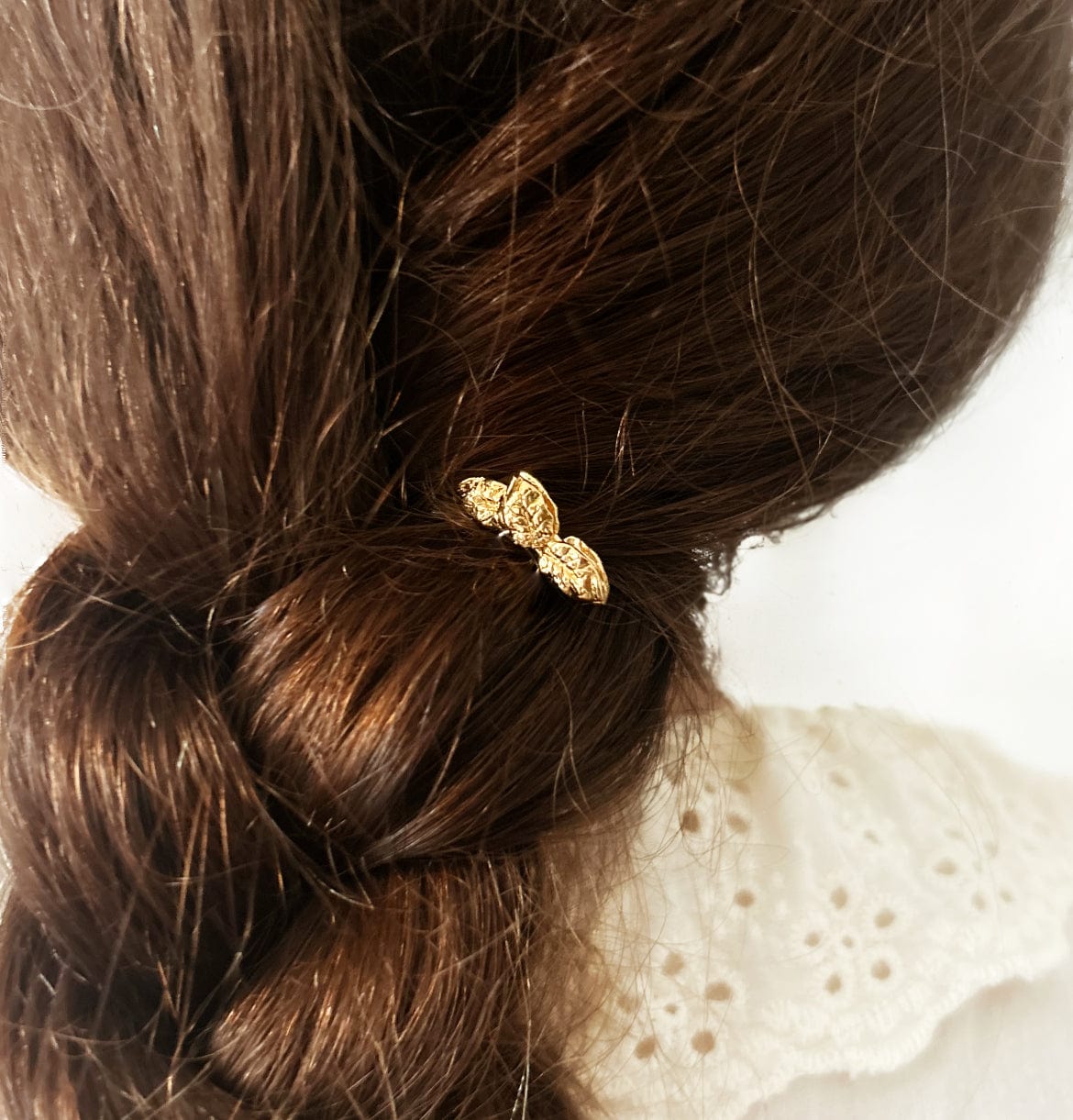 Sublimez votre coiffure le jour de votre mariage avec nos broches de cheveux en or recyclé 24 carats, minutieusement fabriquées à la main dans notre atelier parisien. Chaque pièce incarne le luxe durable, fusionnant l'art de la slow fashion avec une excellence artisanale incomparable. Conçues en éditions limitées, nos créations sont le reflet d'un savoir-faire d'exception et d'un engagement profond pour une joaillerie éthique. Découvrez nos broches haute fantaisie et exclusives, idéales pour parfaire votre look de mariage, offrir un bijou de mariage unique ou sublimer vos coiffures du quotidien. Marque française, fabriquée à Paris. Garantie de deux ans.