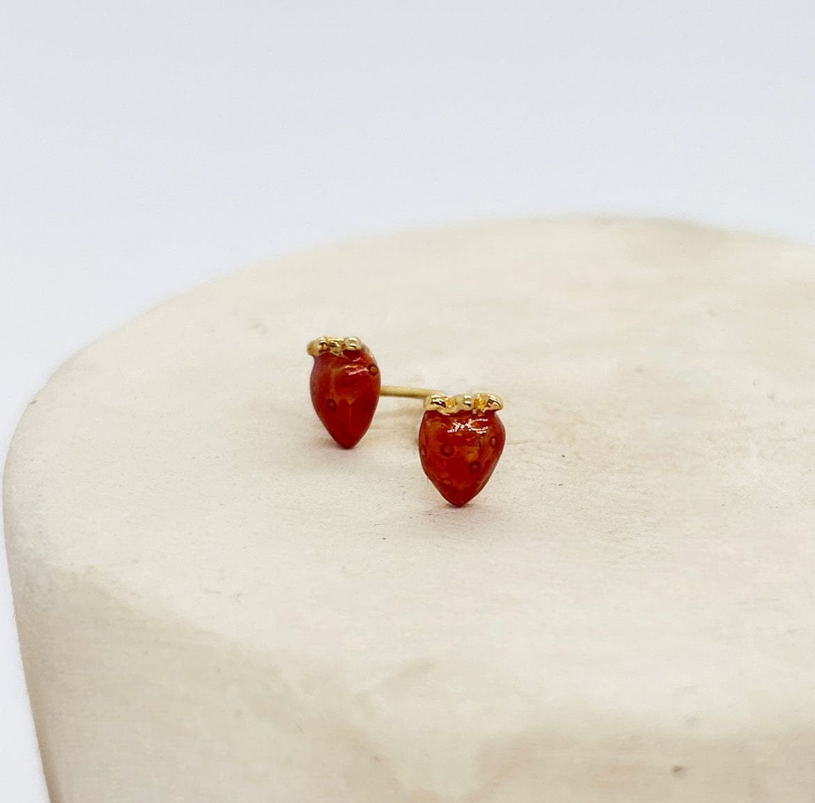 Réalisées à la main en France, nos boucles pour oreilles percées Myrthe sont dorées à l'or recyclé 24 carats. Deux adorables petites puce en forme de baies, déclinables en or jaune et émail rouge ; discrètes et légères, nos boucles Myrthe seront parfaites en premières boucles.