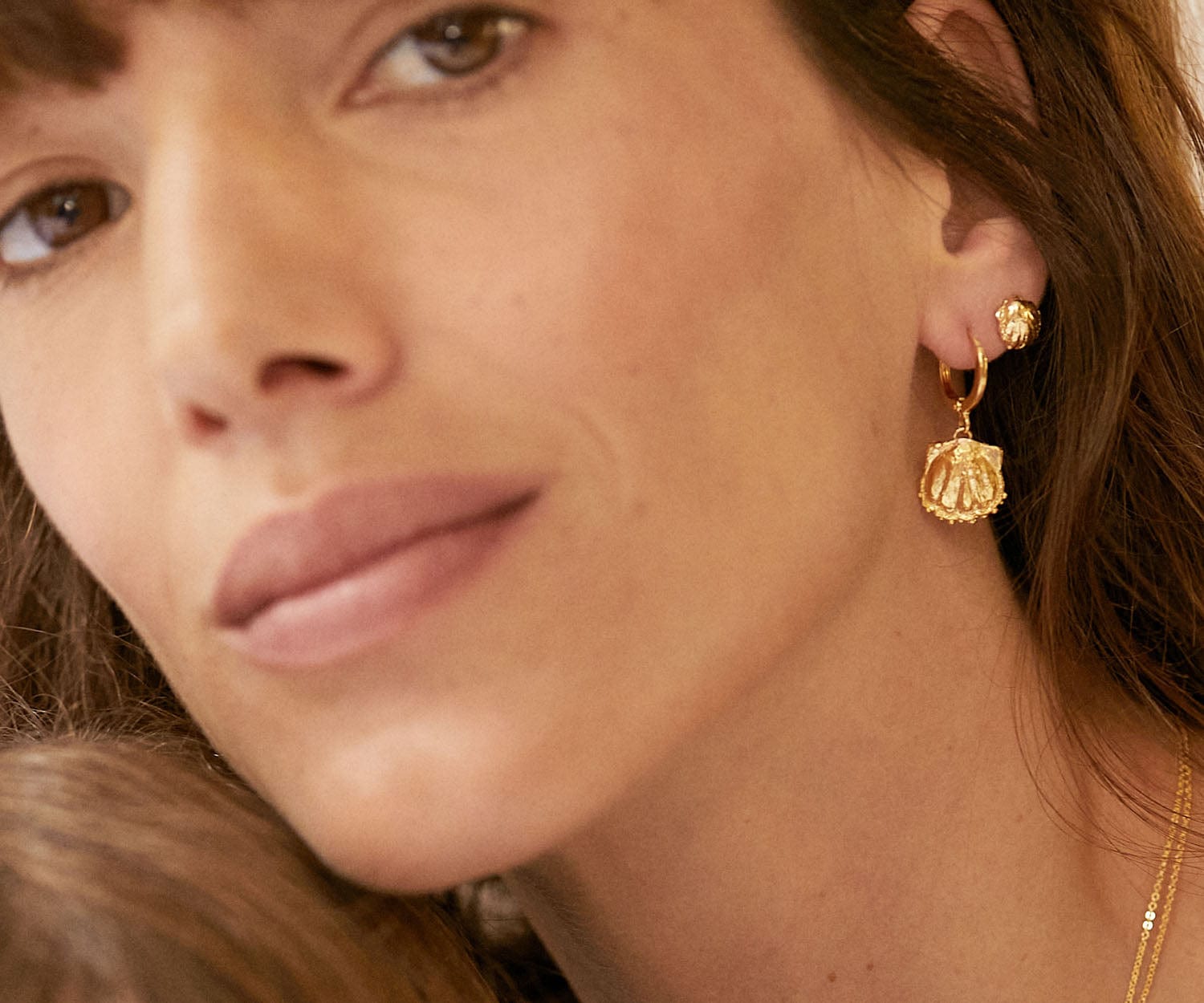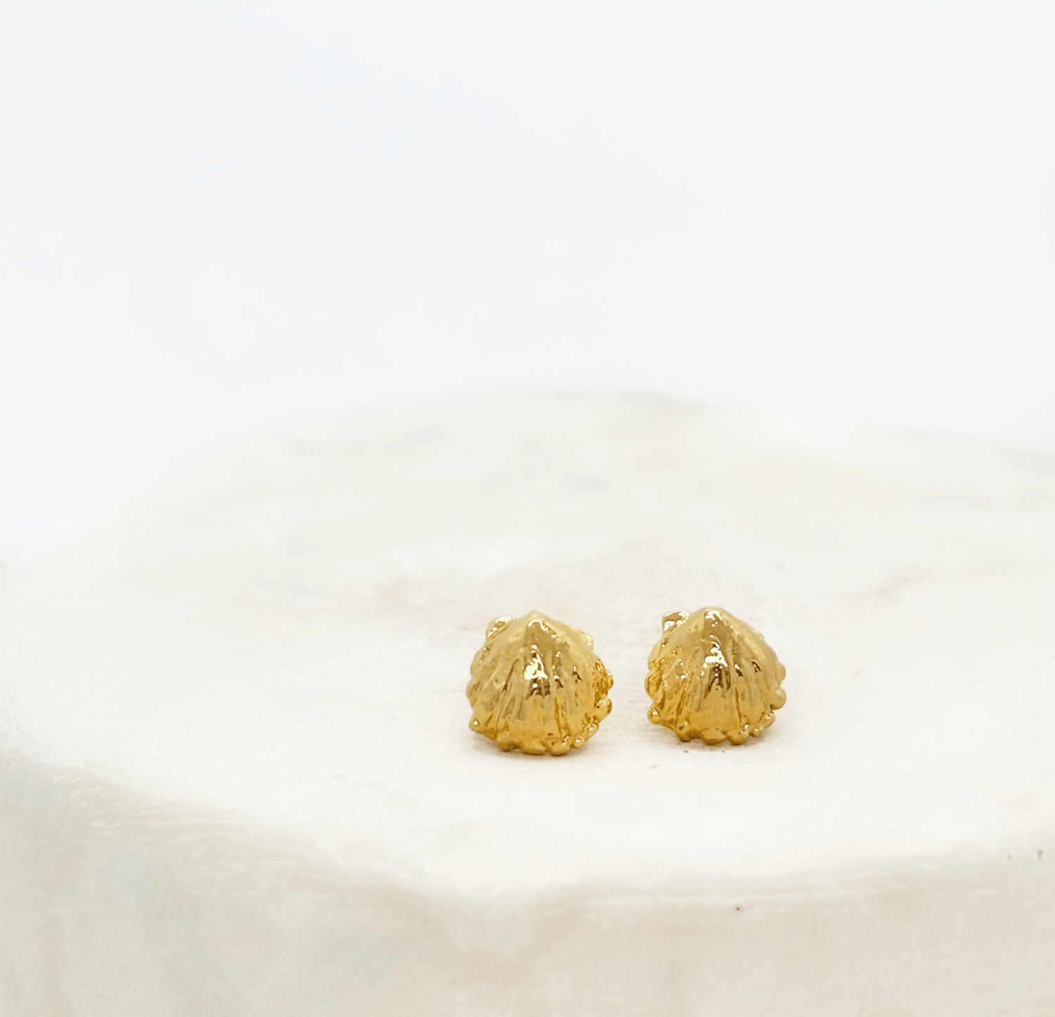 Des petites puces d'oreilles réalisées artisanalement à Paris, en jolie forme de coquillage. Discrètes et légères, nos boucles d'oreilles Oce dorées à l'or recyclé 24 carats, seront parfaites en premières boucles.