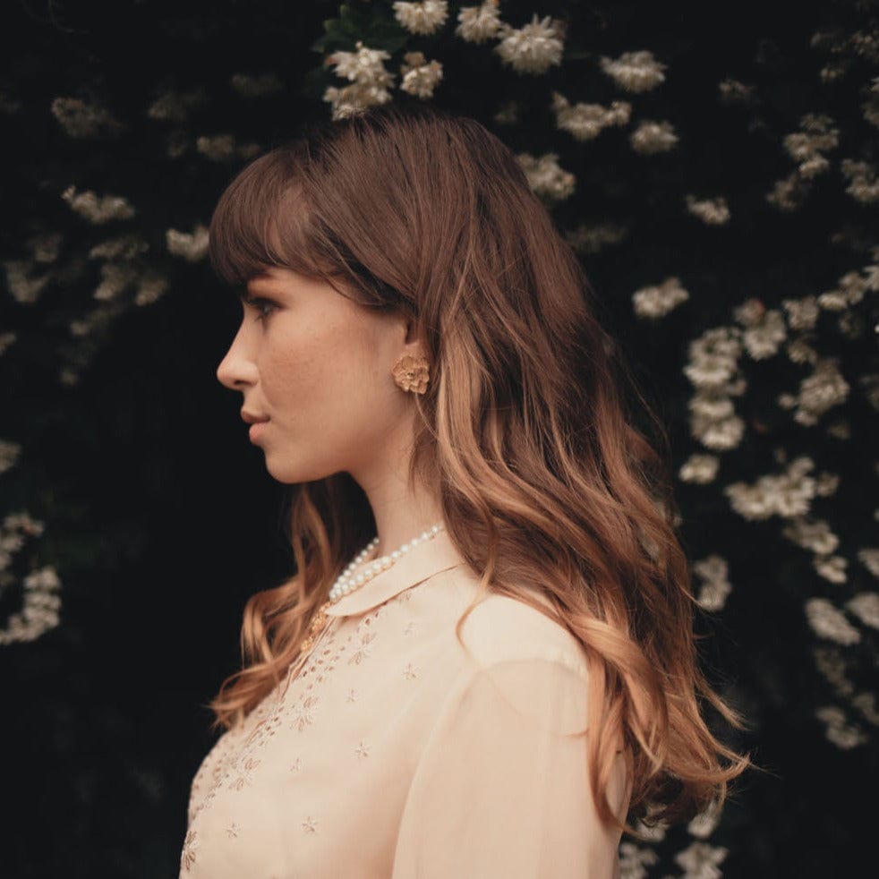 Fabriquées à Paris, les boucles d'oreilles Sarah aux lignes poétiques, représentant une fleur tout droit sortie de l'imagination de la créatrice, apporteront de la douceur à votre visage.