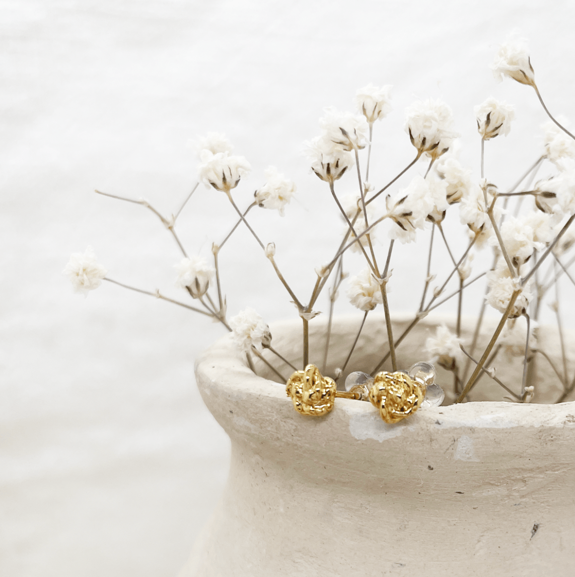 Ces puces d'oreilles pour enfants et grands ! Sont recouvertes d'or de qualité 24 carats par nos artisans. Avec ces petits noeuds marins on hisse les voiles et on met le cap vers le soleil!