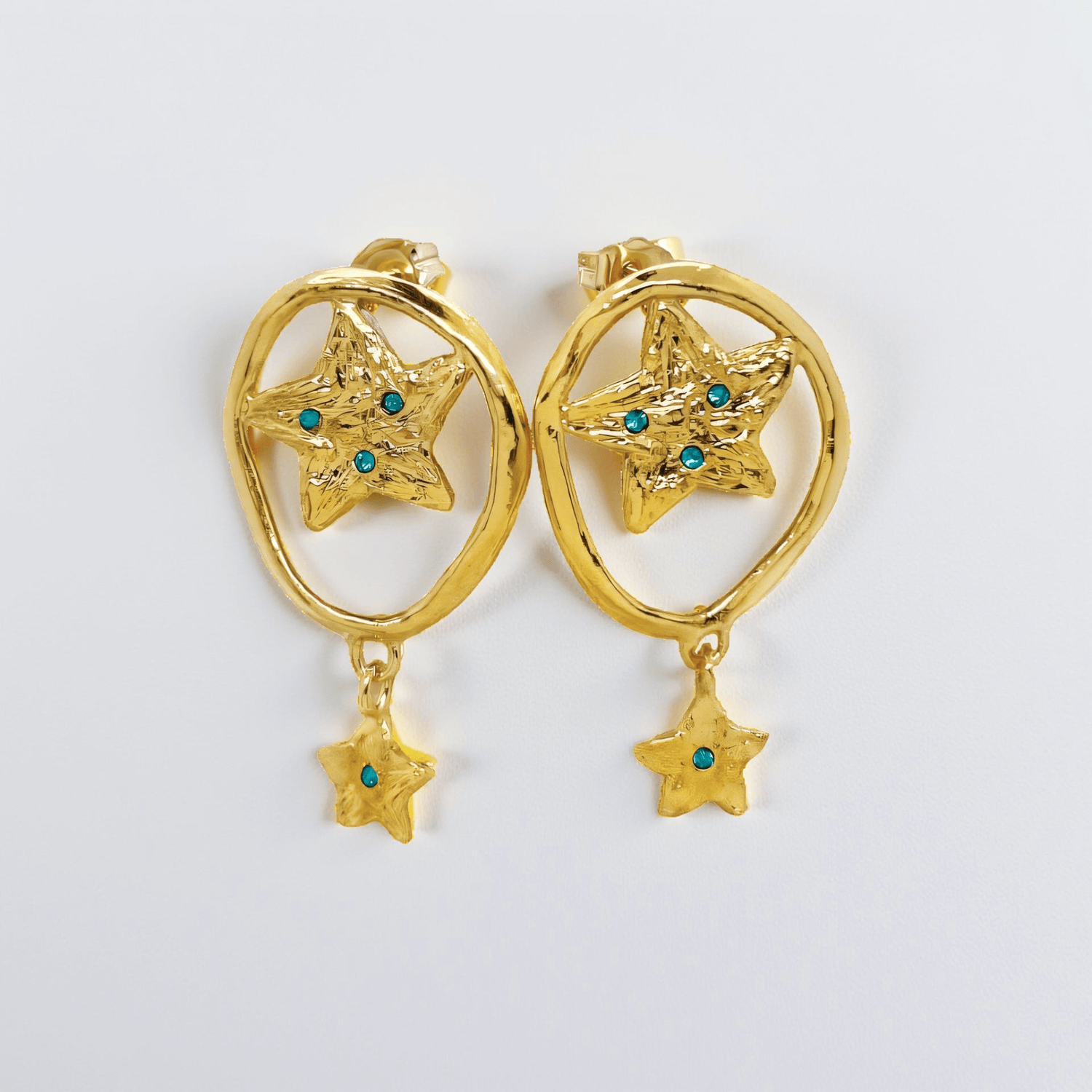 Les boucles d’oreilles Garland capturent l’éclat des étoiles avec leurs étoiles dorées, serties de cristaux scintillants. Jouant avec la lumière et le mouvement, elles évoquent une danse céleste, entre mystère et élégance. Fabriquées à Paris, elles sont une ode à l’artisanat et à la poésie des astres.