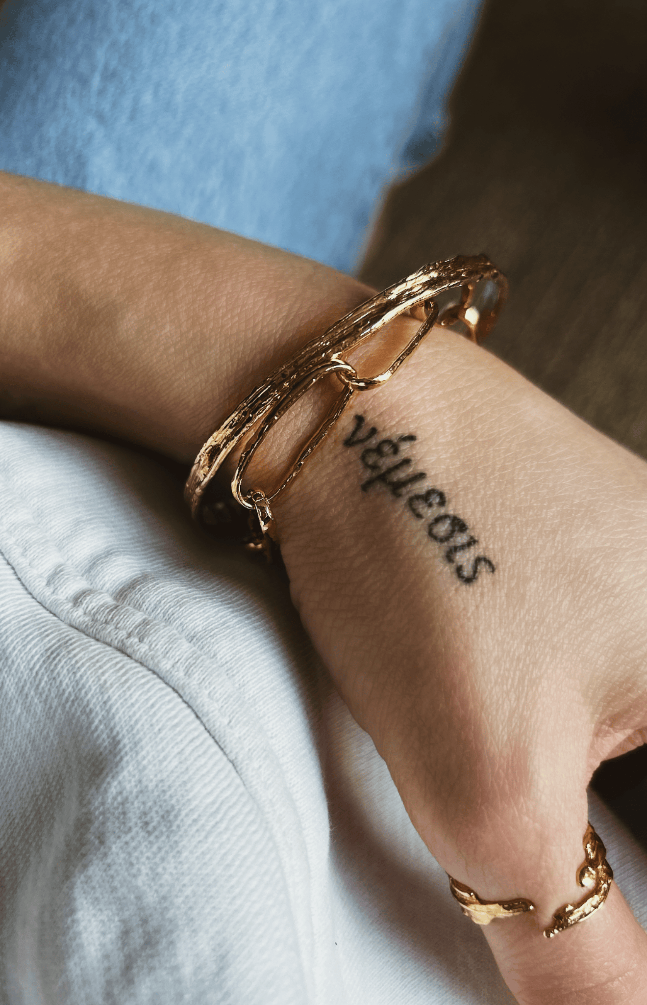 Le bracelet Koro se distingue par sa chaîne aux maillons allongés. Chaque maillon martelé à la main révèle un aspect organique et raffiné, qui reflète la lumière avec subtilité. Léger et intemporel, il apporte une touche d’élégance discrète, à porter seul pour un style épuré ou en accumulation pour un effet audacieux.
