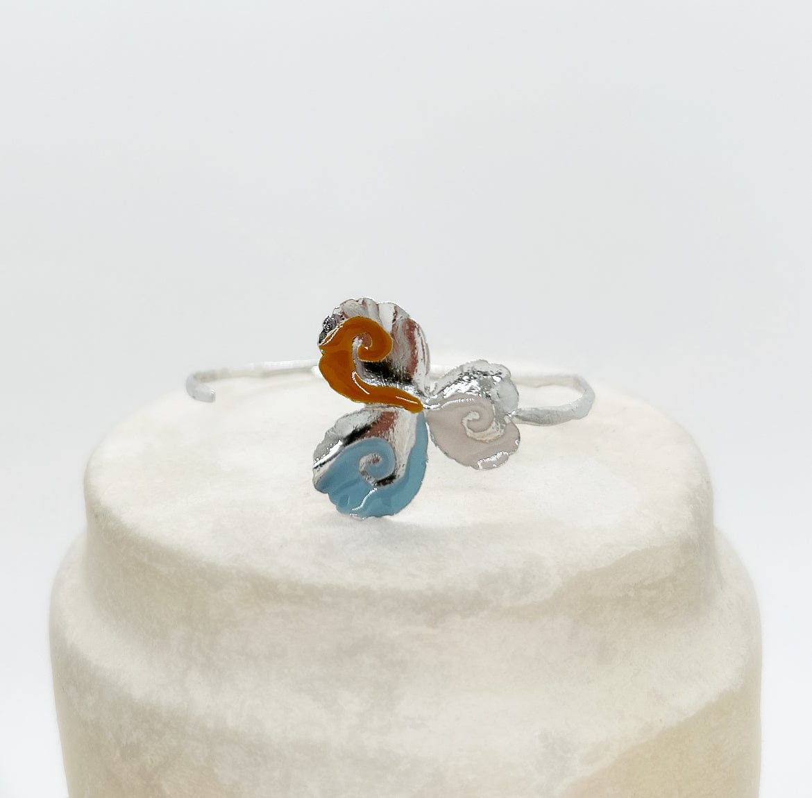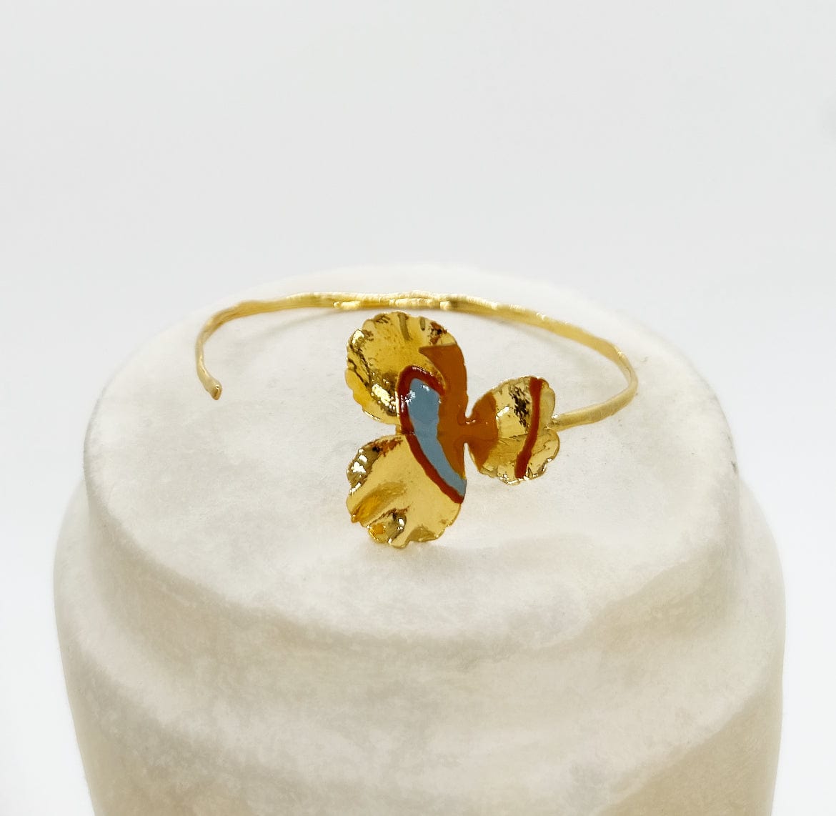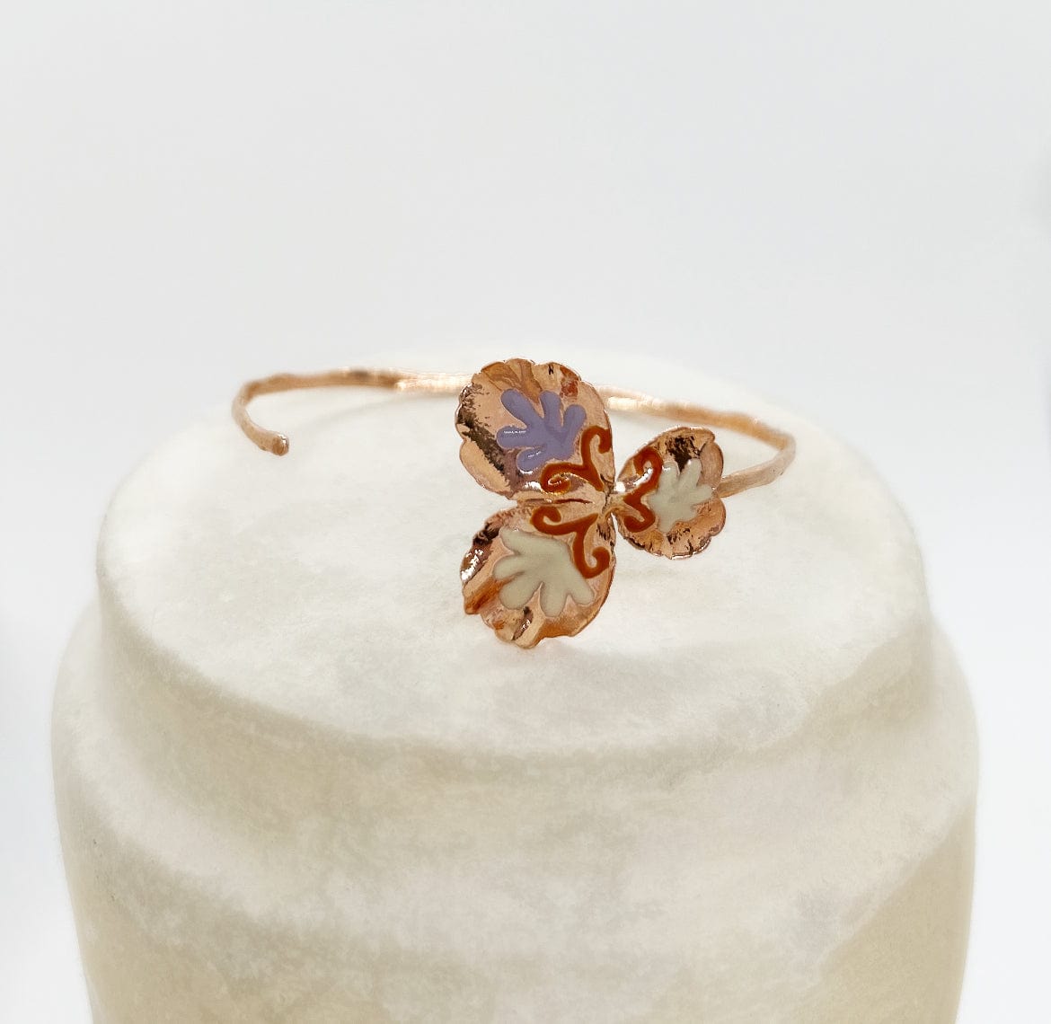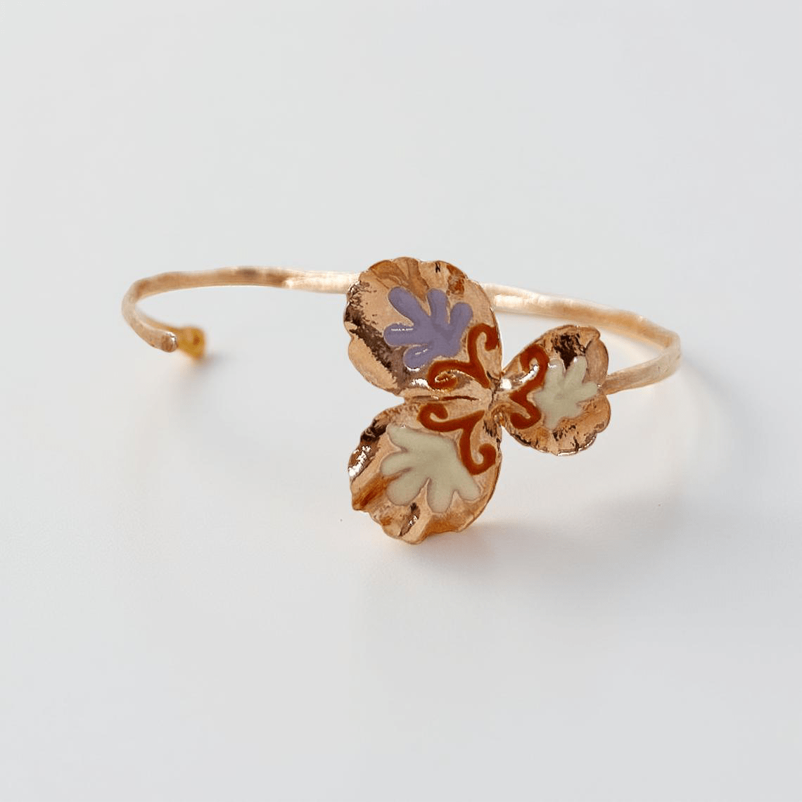 Fabriqué à la main en France, ce jonc ajustable prend la forme délicate d'une fleur de Pensée. Un bijou iconique de notre maison.