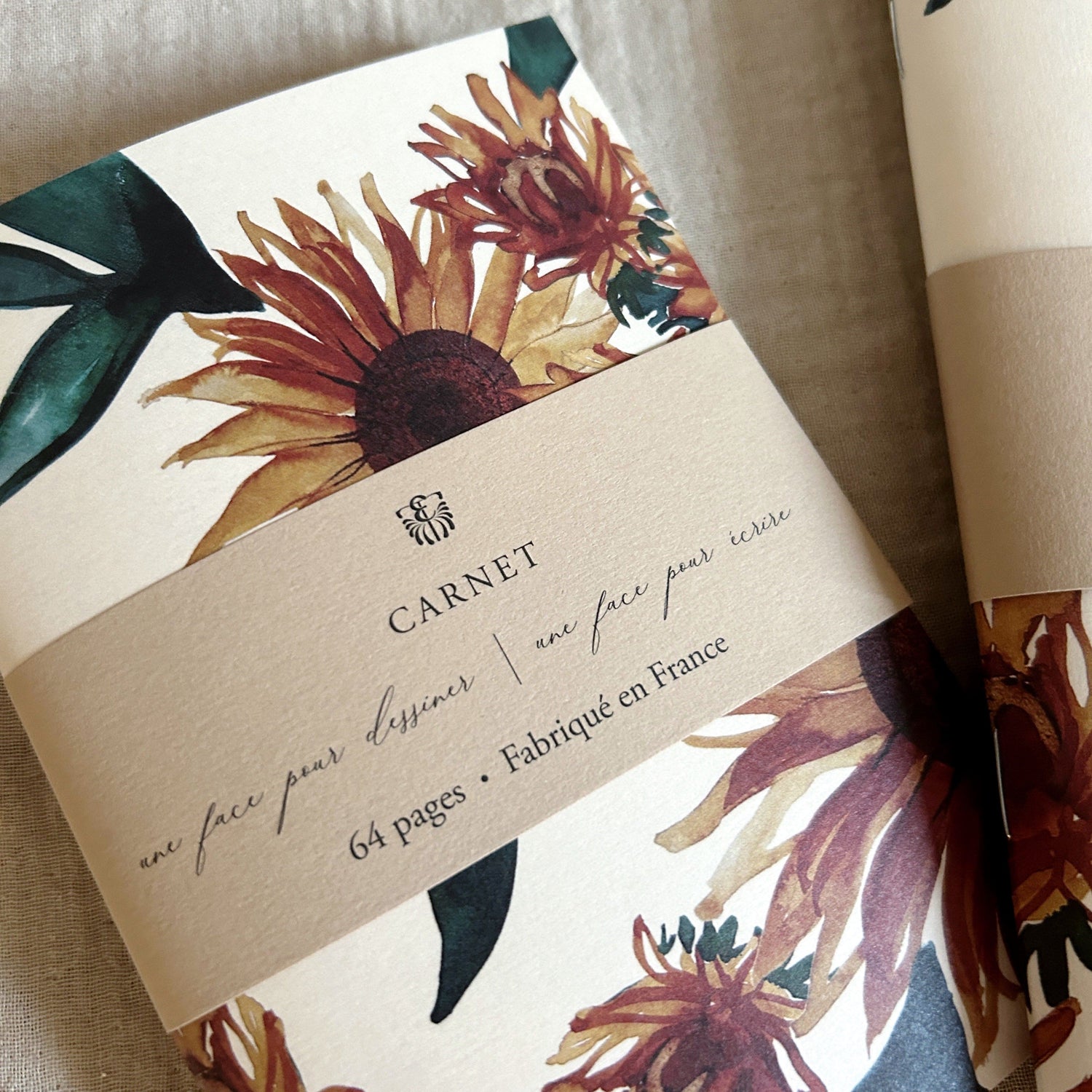 Ces carnets fabriqués en France vous suivront où que vous alliez, de format A5 et A6 avec 64 pages, une face lignée et une face vierge, parfait pour noter vos idées et dessiner. Couverture rigide en carton imprimé de notre imprimé exclusif tournesol.