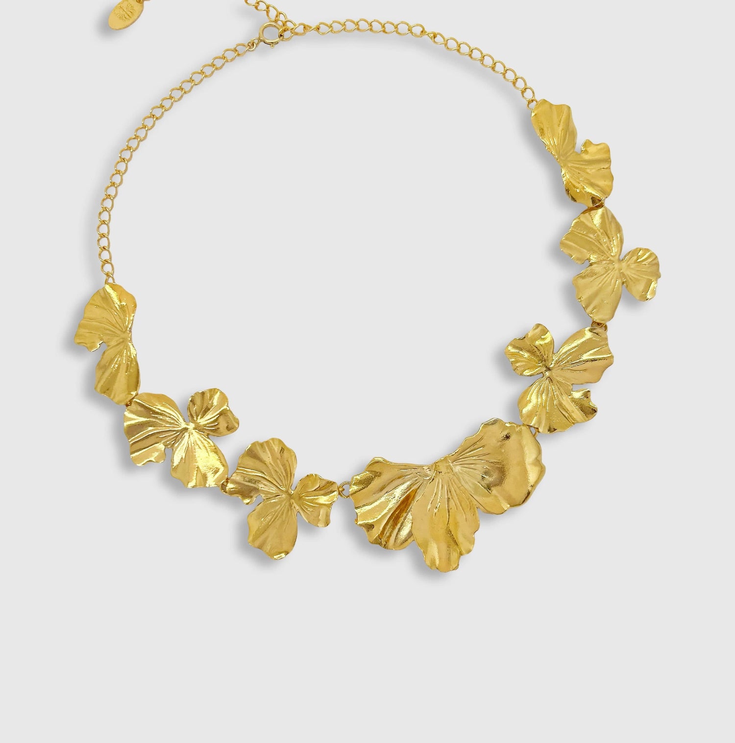 Audacieux et majestueux, le collier Anomera se compose d’une succession de fleurs sculptées qui s’entrelacent en un mouvement harmonieux. Avec ses pétales texturés en finition miroir, il capte intensément la lumière et habille le cou d’une présence affirmée. Véritable bijou statement, il s’impose comme une pièce forte, idéale pour sublimer une tenue minimaliste ou accompagner un look de soirée. Puissant et poétique, Anomera incarne l’élégance dans sa forme la plus sculpturale.