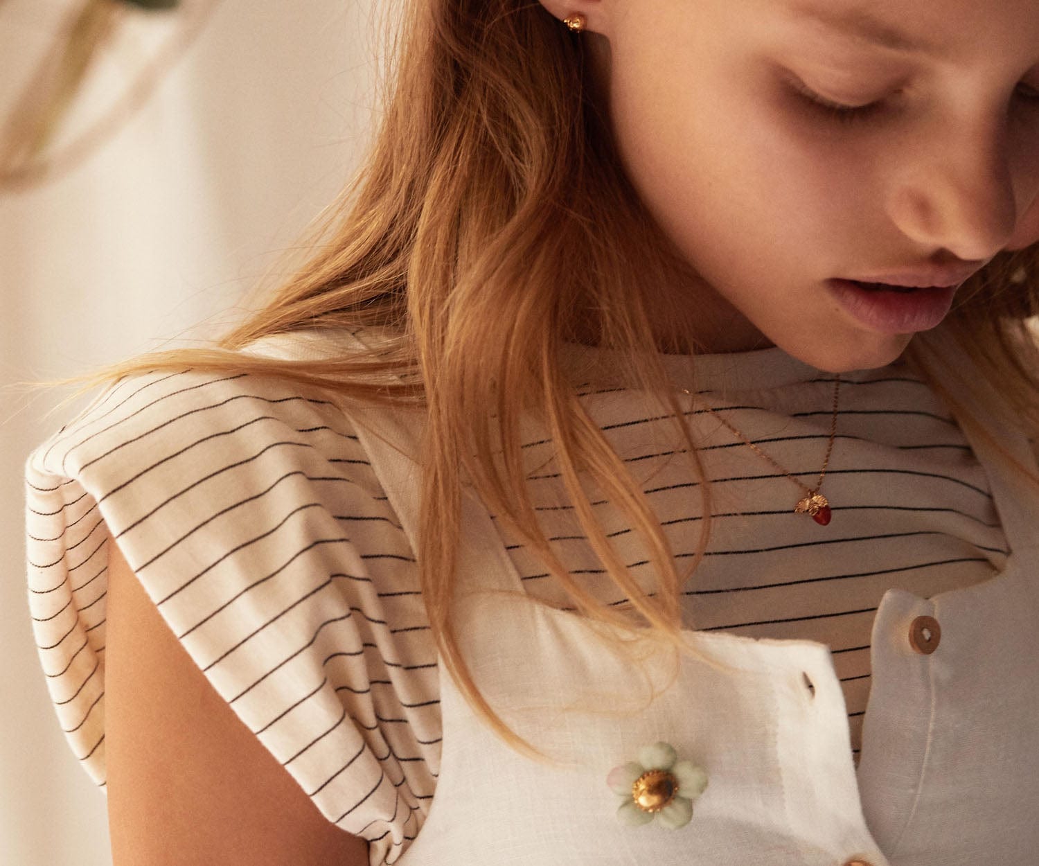 Nos colliers enfant en or recyclé 24 carats sont des créations uniques, idéales pour un anniversaire ou une première parure symbolique. Réalisés avec soin dans notre atelier parisien, ces bijoux raffinés reflètent un luxe durable et une approche slow fashion, offrant à chaque enfant un trésor à chérir au fil du temps.