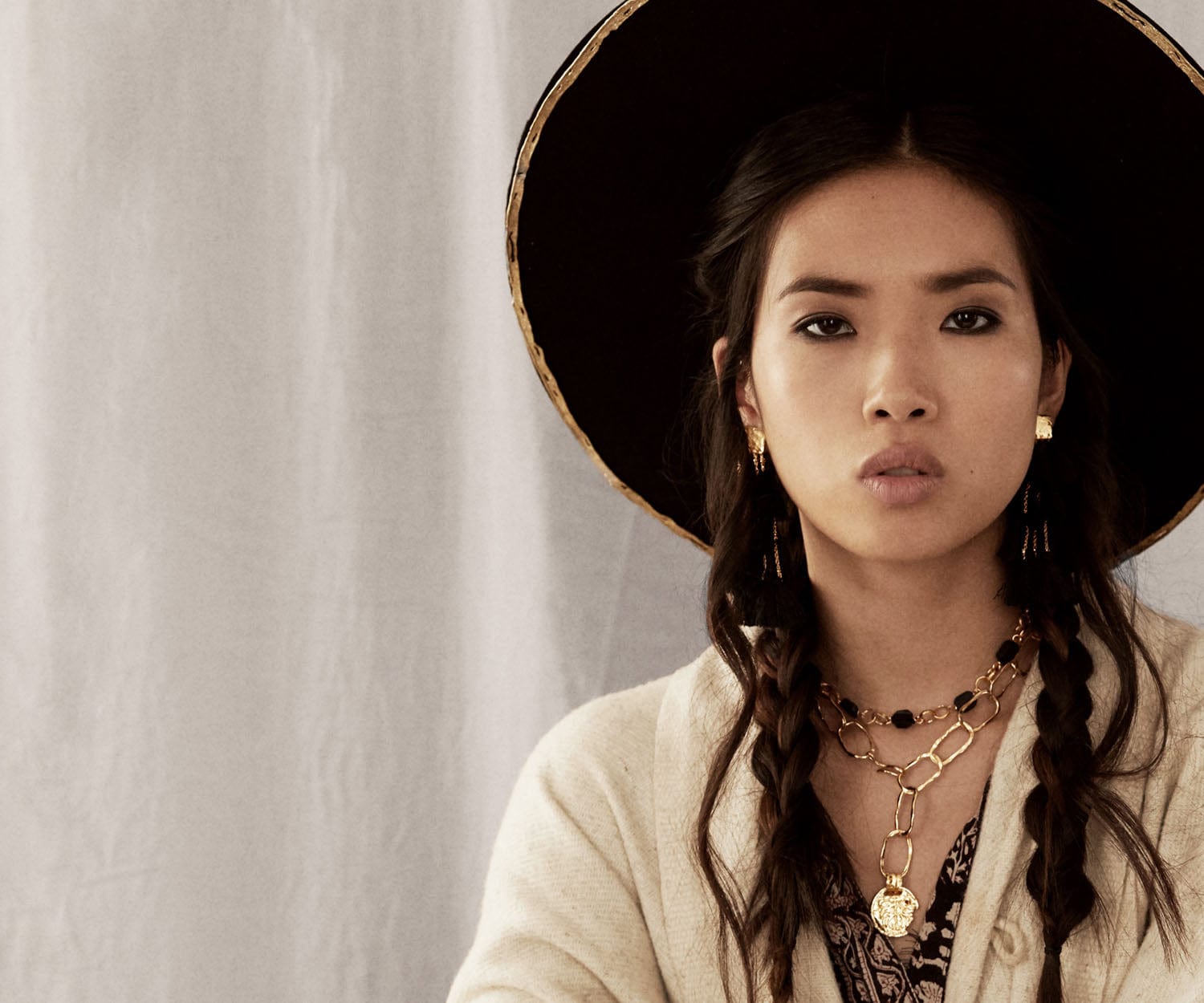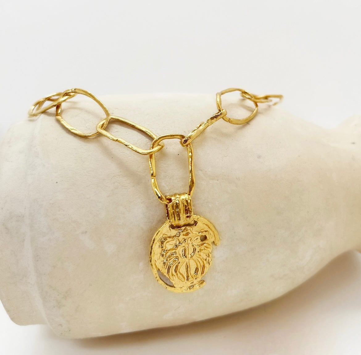 Tel un trésor ancien, le collier Geraja réalisé dans notre atelier à Paris, ajoute une touche unique à vos tenues. Il est composé d’une chaîne imposante et d’un pendentif symbolique à notre marque, une pièce inspirée d'un voyage en Inde. Portez-le seul ou parmi une accumulation d'autres modèles.