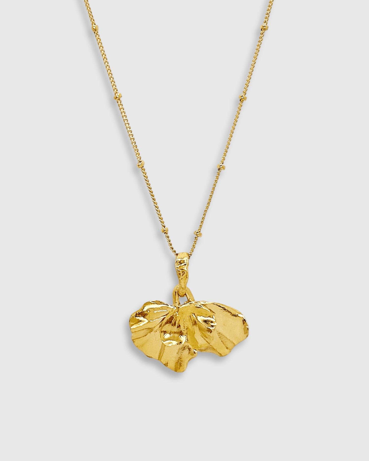 Le collier Halki se distingue par un pendentif floral délicatement sculpté aux formes organiques. Son fini doré lumineux met en valeur les reliefs du motif et capte subtilement la lumière. La chaîne fine, ponctuée de petits détails, apporte une touche d’élégance et de légèreté. Un bijou raffiné et intemporel, idéal à porter seul ou en accumulation.