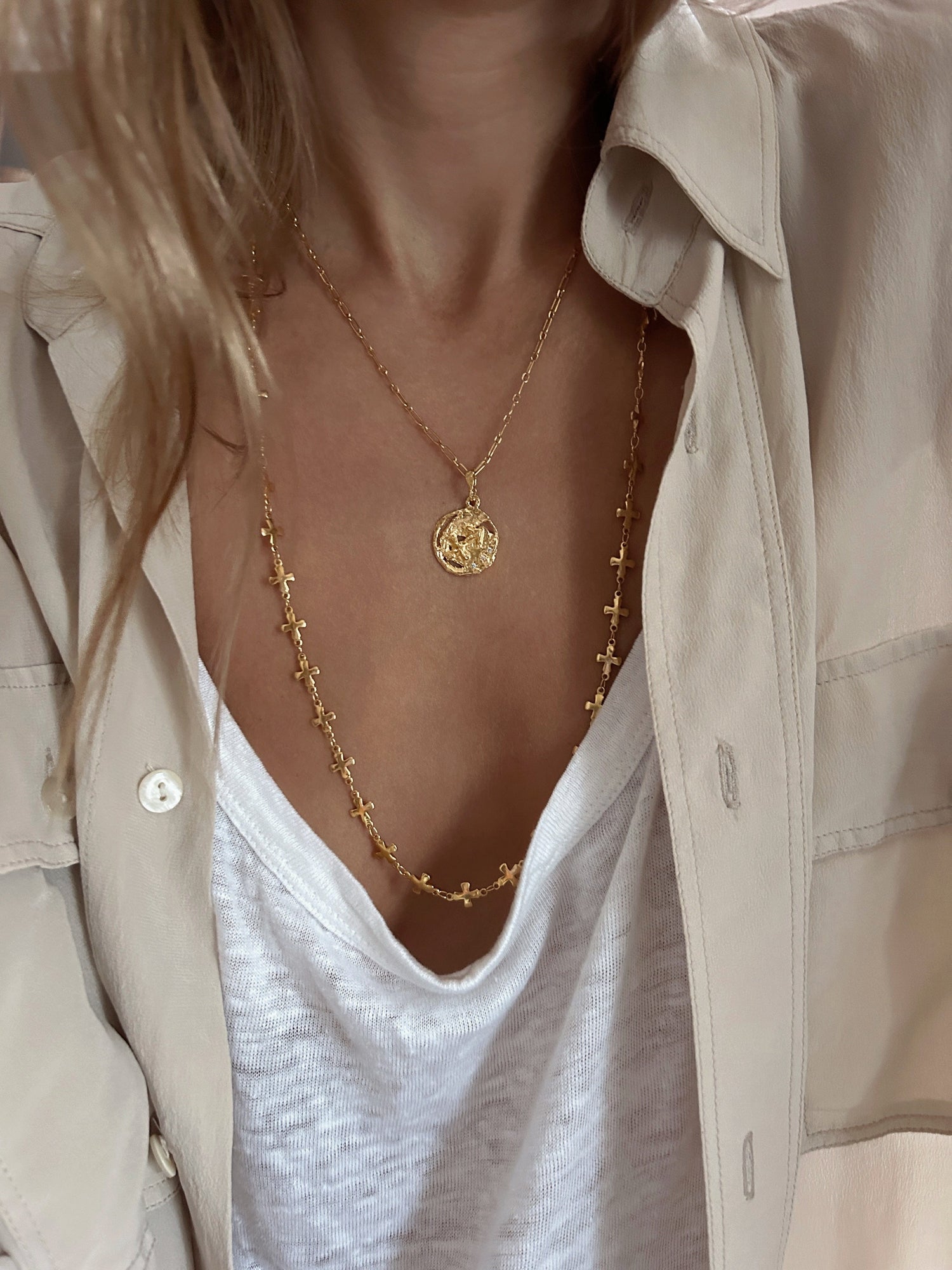 Un de nos merveilleux best seller, le collier Kamari est un intemporel réalisé de façon artisanale en France, une pièce qu’on ne souhaite jamais retirer. Avec sa chaine en forme de petites croix, il est à porter seul ou parmi une accumulation d'autres pièces. Il se ferme à l'aide d'un délicat fermoir anneau à ressort.