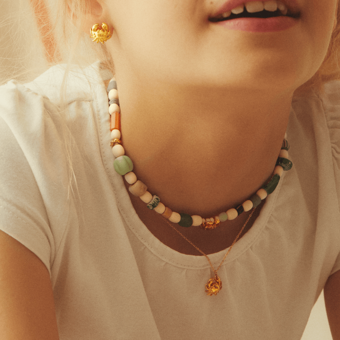 Nos colliers enfant en or recyclé 24 carats sont des créations uniques, idéales pour un anniversaire ou une première parure symbolique. Réalisés avec soin dans notre atelier parisien, ces bijoux raffinés reflètent un luxe durable et une approche slow fashion, offrant à chaque enfant un trésor à chérir au fil du temps.