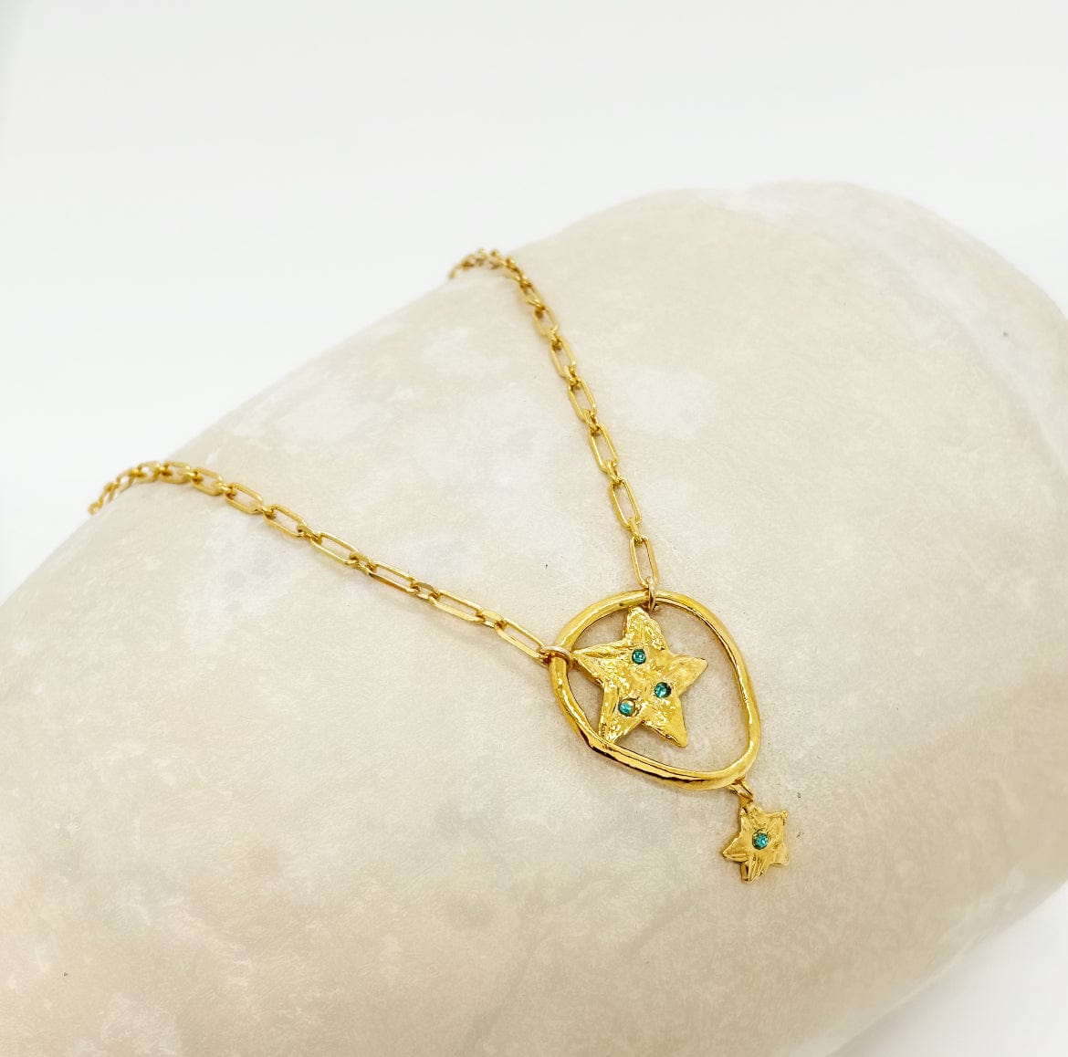 Le collier Sherman est une création unique, façonnée avec soin dans nos ateliers parisiens. Réalisé de manière artisanale, chaque détail témoigne du savoir-faire et de la minutie de nos artisans. Son pendentif étoilé, délicatement texturé et serti de cristaux scintillants, capte la lumière avec éclat.