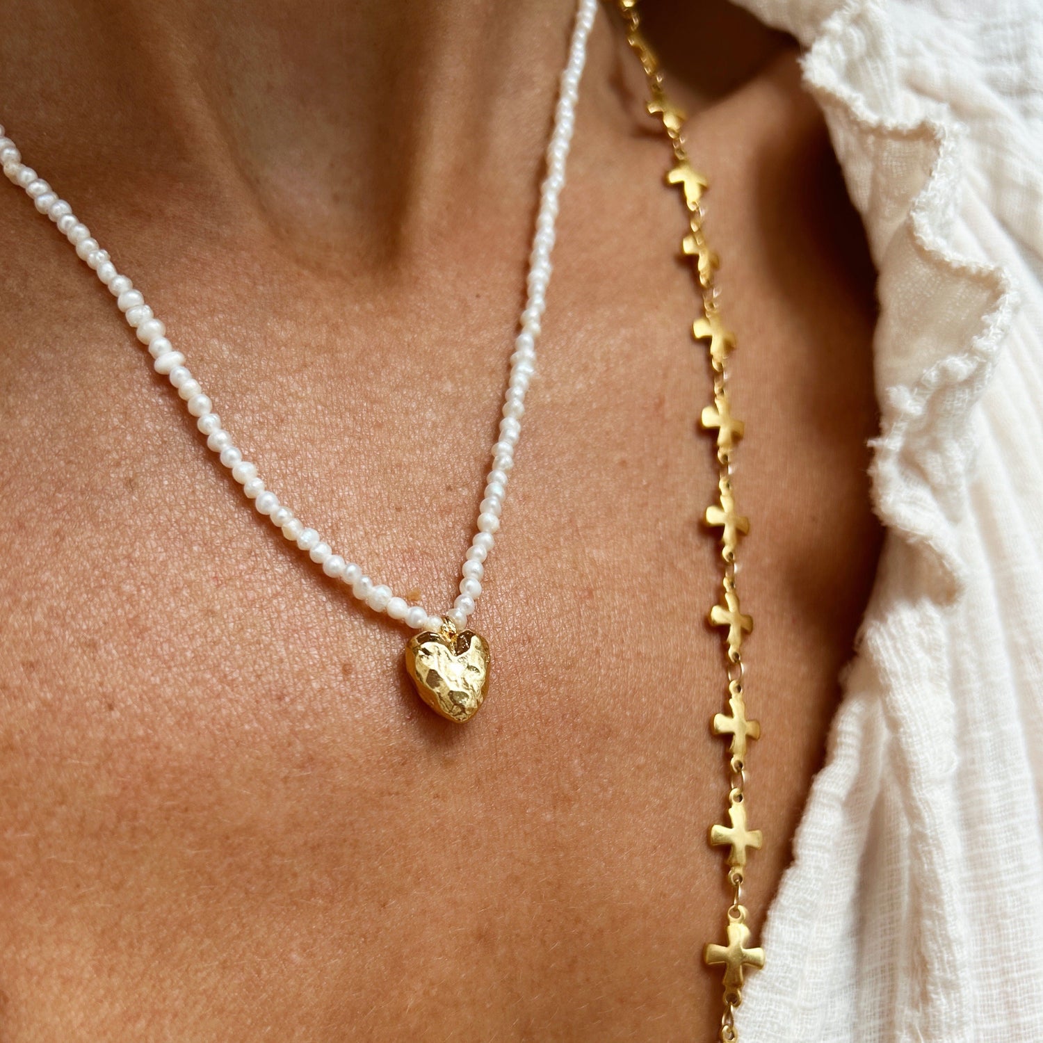 Alliant douceur et simplicité, le collier Fakiris orné de perles d'eau douce blanches, donnera un éclat flamboyant et un style vintage à toutes vos tenues.