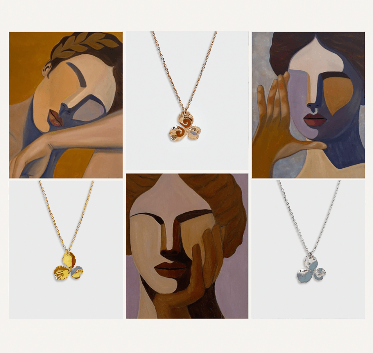 Histoire de cette capsule : En collaborant ensemble, Elise et Dalel, ont mêlé leur univers en proposant une collection de bijoux peints autour de l'emblématique collection "PENSÉE". Vous le savez, la femme à une place centrale dans notre processus de création, depuis toujours nous pensons nos pièces pour toutes les femmes, des plus discrètes aux plus audacieuses, des éternelles rêveuses au plus pragmatiques.