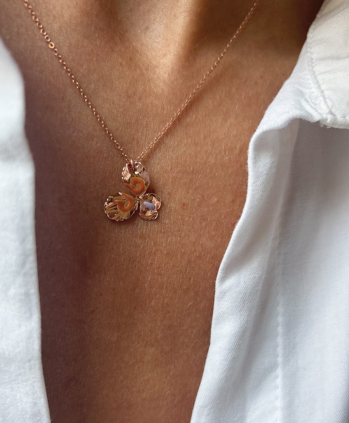 Fabriqué à la main en France, ce collier best seller est délicatement orné d'une fleur de Pensée. Un bijou iconique de notre maison. Il donnera un éclat subtil et un style romantique à toutes vos tenues.