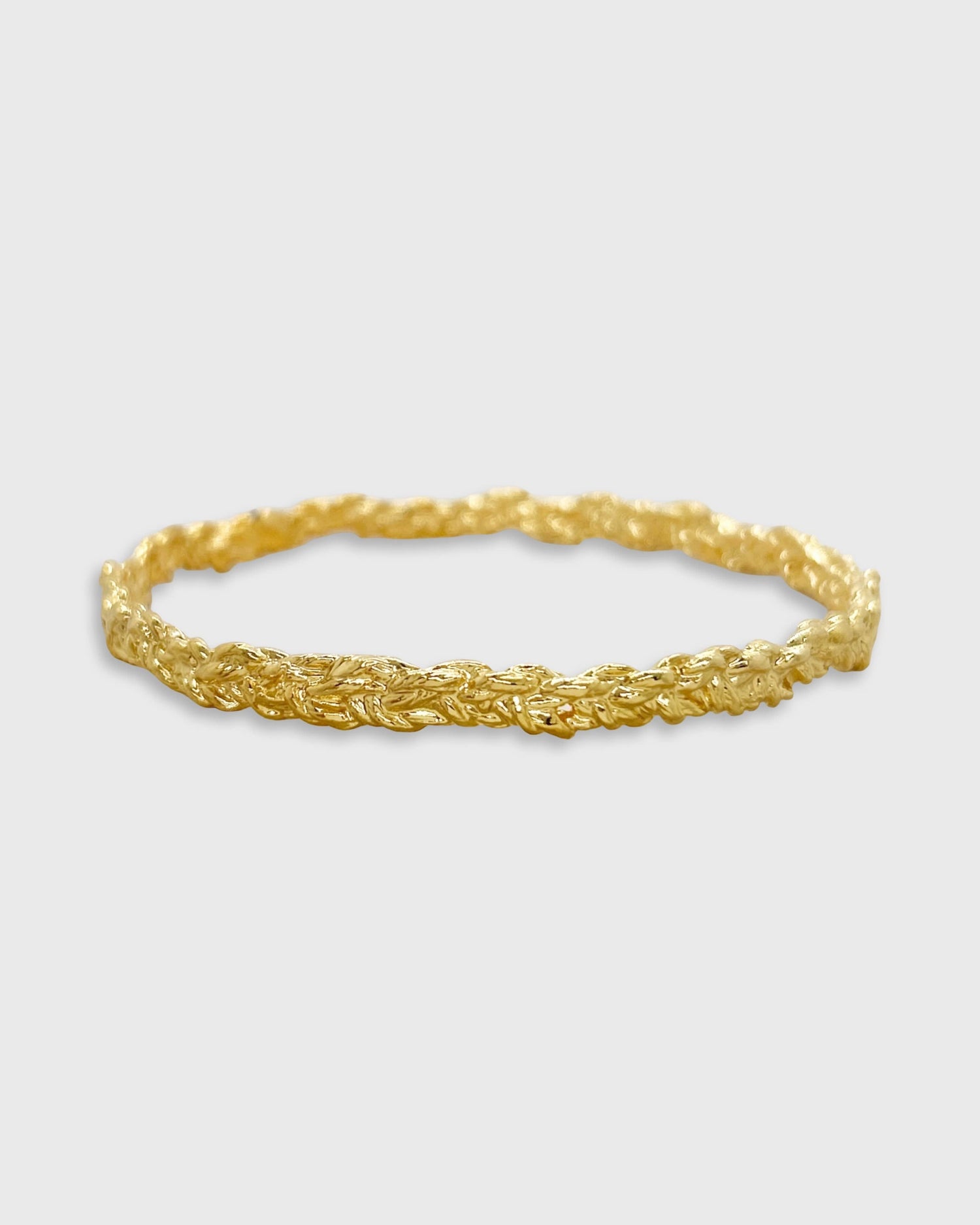 Le jonc Rosa aux effets torsadés, est le résultat d'un travail minutieux fait-main, dans notre atelier parisien. Cette pièce chaleureuse et au style intemporel apportera une touche discrète et élégante à toutes vos tenues.